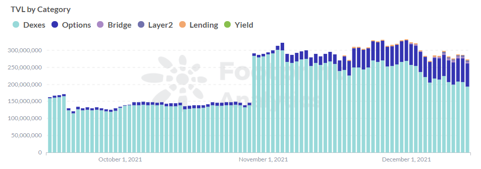 Optimism avait une TVL de 272 millions de dollars au 14 décembre, soit seulement 7,35% de la TVL totale de l’ensemble de l’écosystème de la couche 2.