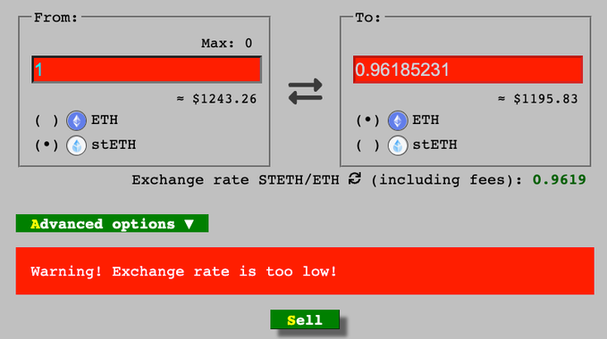 En effet, la panique de la chute des prix, les gens ont vendu leur stETH pour la sécurité de sa garantie plus dure, ETH.