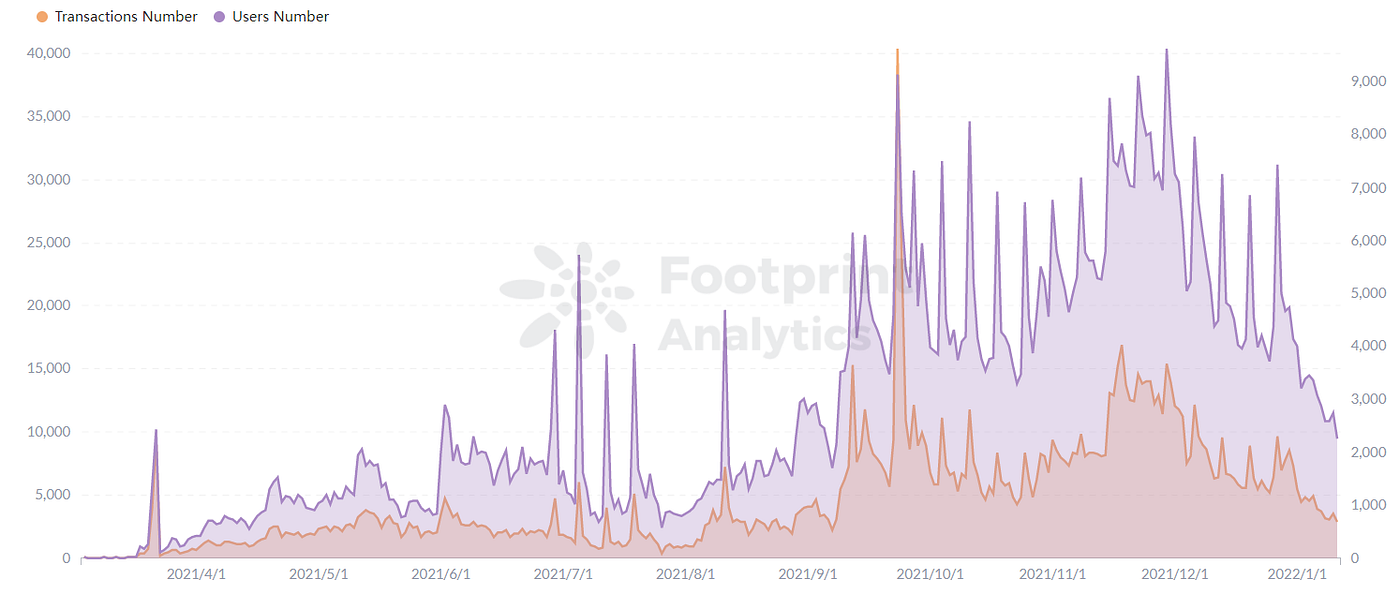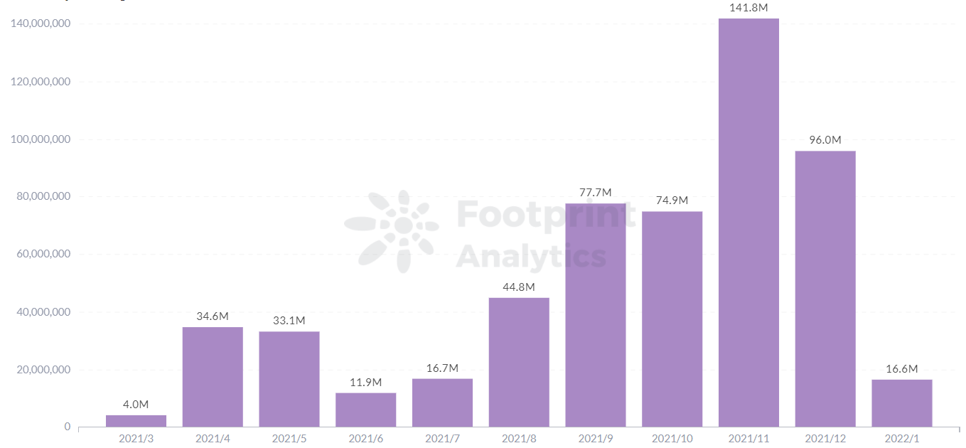 Par rapport à mars 2021 lors de son lancement, le volume des transactions de Metaverse Miner a commencé à augmenter à partir de septembre 2021, à environ 70 millions de dollars, et a culminé à 140 millions de dollars en novembre. Cela était dû au gameplay innovant du jeu, à l’intégration de plusieurs modes de jeu pour attirer les joueurs et au boom du métaverse à l’époque.