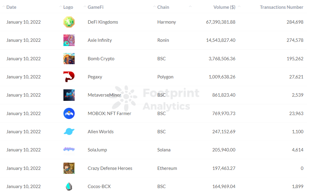 Selon les dernières données de Footprint Analytics, Metaverse Miner occupe actuellement la cinquième place parmi les projets GameFi en termes de volume de transactions, avec un écart de justification avec DeFi Kingdoms et Axie Infinity.