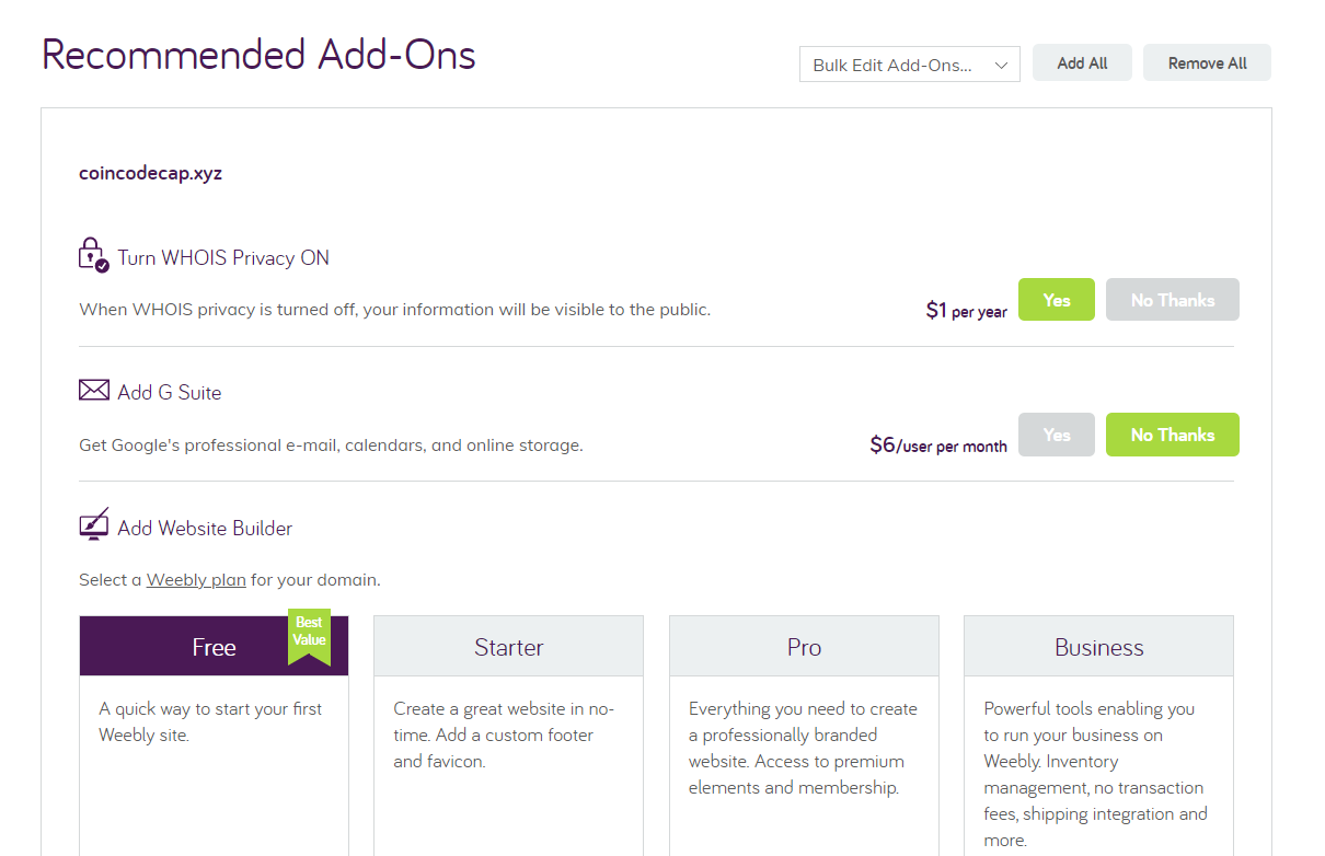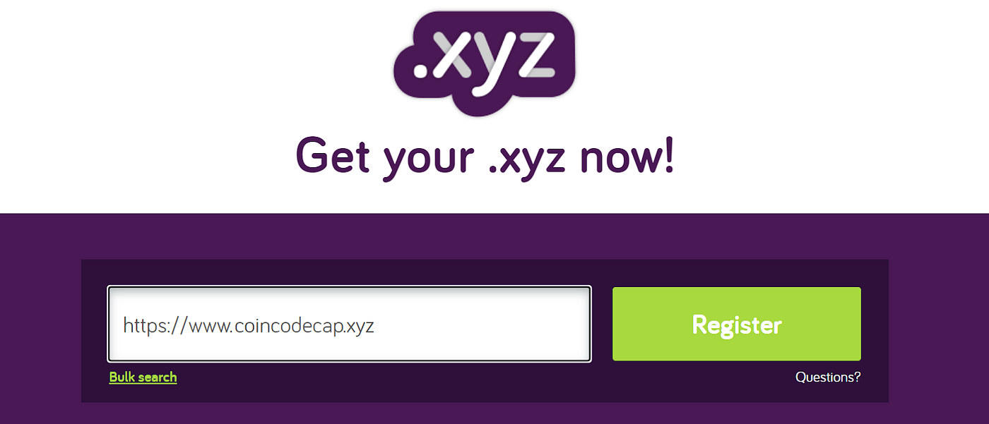 Étape 1: Choisissez un nom de domaine que vous souhaitez enregistrer. Exemple : coincodecap.xyz, blockwish.xyz, etc.