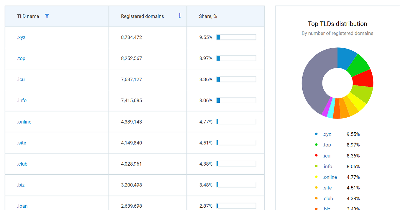 Par conséquent, comment miser sur des domaines établis tels que .com, .in, .eu et .gov ? Les noms de domaine autres que .com semblent être plus populaires parmi les entreprises de blockchain. Par exemple, le domaine .xyz est l’un des plus couramment utilisés par les organisations Blockchain.