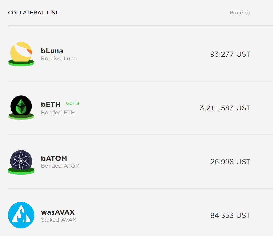 Les autres garanties acceptées sont ETH (la crypto-monnaie native d’Ethereum), wasAVAX (la crypto-monnaie d’Avalanche) et ATOM (la crypto-monnaie de la blockchain Cosmos). Ce sont quelques-unes des plus grandes chaînes de blocs avec les jetons les plus liquides de l’industrie de la cryptographie.