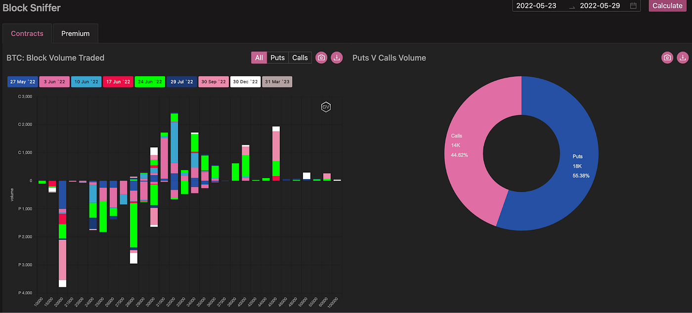 Parmi les stratégies d’options de bloc, l’intérêt des traders était plutôt partagé entre les strikes les plus proches de 31 000 et 34 000 pour les options de vente et 25 000-29 000 pour les options de vente avec les dates d’exécution les plus proches (3, 10 et 24 juin) . La correction du marché a permis aux traders d’équilibrer leurs positions à court et à long terme de manière optimale. Il s’agit d’une évolution bienvenue, car les données macroéconomiques et le sentiment général du marché ne sont pas encore une indication forte que la période la plus difficile pour l’économie mondiale (et les marchés de la cryptographie) est terminée.