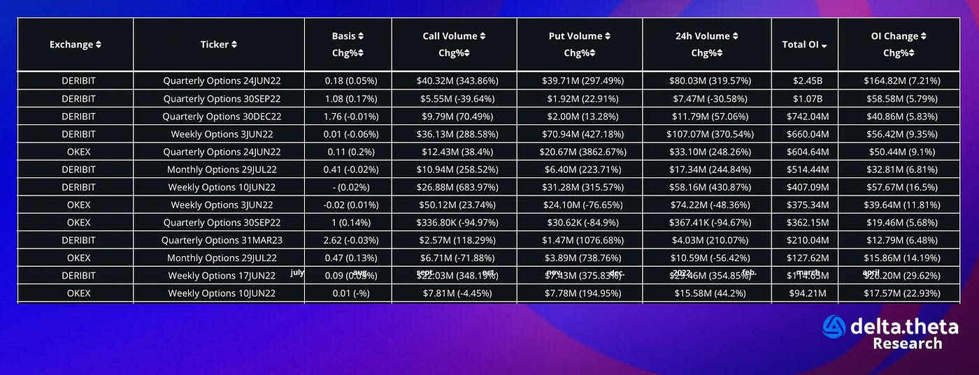 Sur le marché des options, les instruments les plus échangés la semaine dernière étaient des options trimestrielles (avec des dates d’exécution du 24 juin, 30 septembre et 30 décembre) ainsi que des options hebdomadaires à court terme avec une date d’exécution du 3 juin.