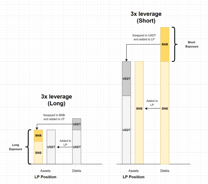 Les utilisateurs peuvent déposer un actif et définir un effet de levier supérieur à 2x, sélectionner l’un des 8 actifs du pool de prêt à emprunter, et Alpaca convertira automatiquement l’actif en un pool de liquidités 50:50 pour l’utilisateur.