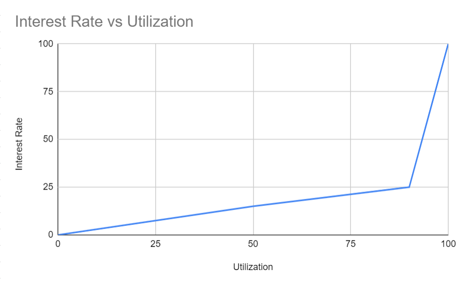 Une autre chose à noter est que lorsqu’il s’agit de prêter sur ces plateformes, leur % APY est généralement déterminé avec une courbe d’intérêt, de sorte que plus l’utilisation est élevée, plus ils peuvent donner d’APY à ses prêteurs car il y a plus d’intérêts gagnés de les emprunteurs en raison de la demande pour cet actif particulier. Ce qui signifie également que l’intérêt fourni par APY fluctuera de temps à autre en fonction de la demande d’emprunt.