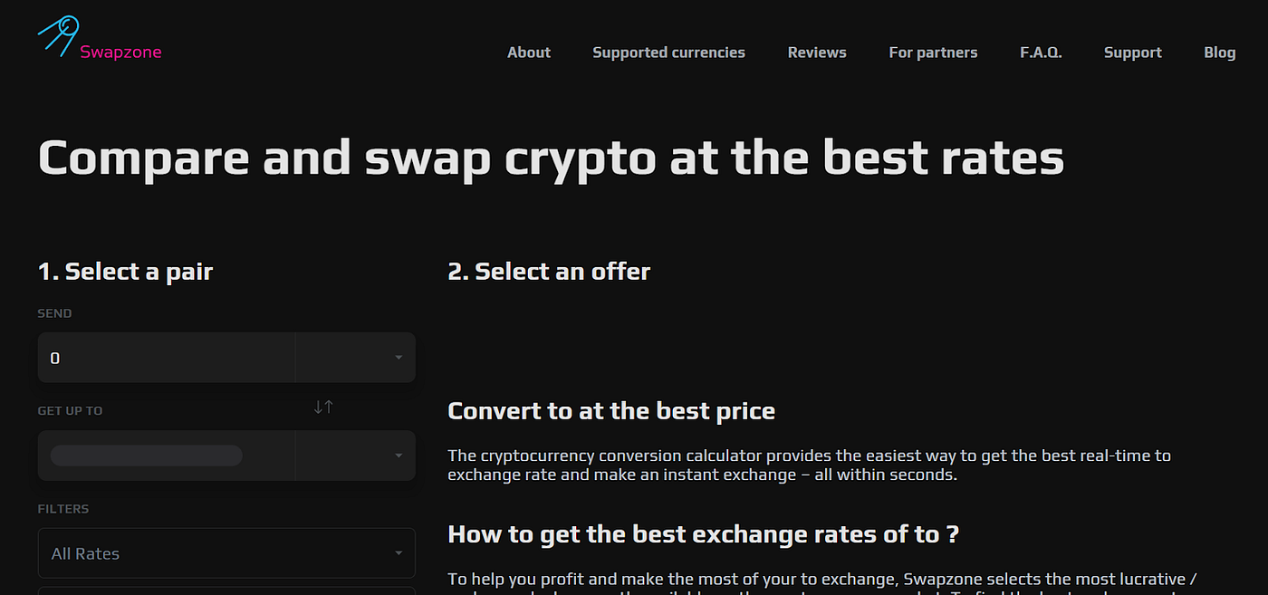 Swapzone est un agrégateur d’échange instantané non dépositaire de plus en plus populaire qui aide les utilisateurs à rassembler les offres d’échange pour plusieurs paires cryptographiques prises en charge. La plate-forme surveille certains des meilleurs taux de change pour des centaines, voire des milliers de paires d’actifs.