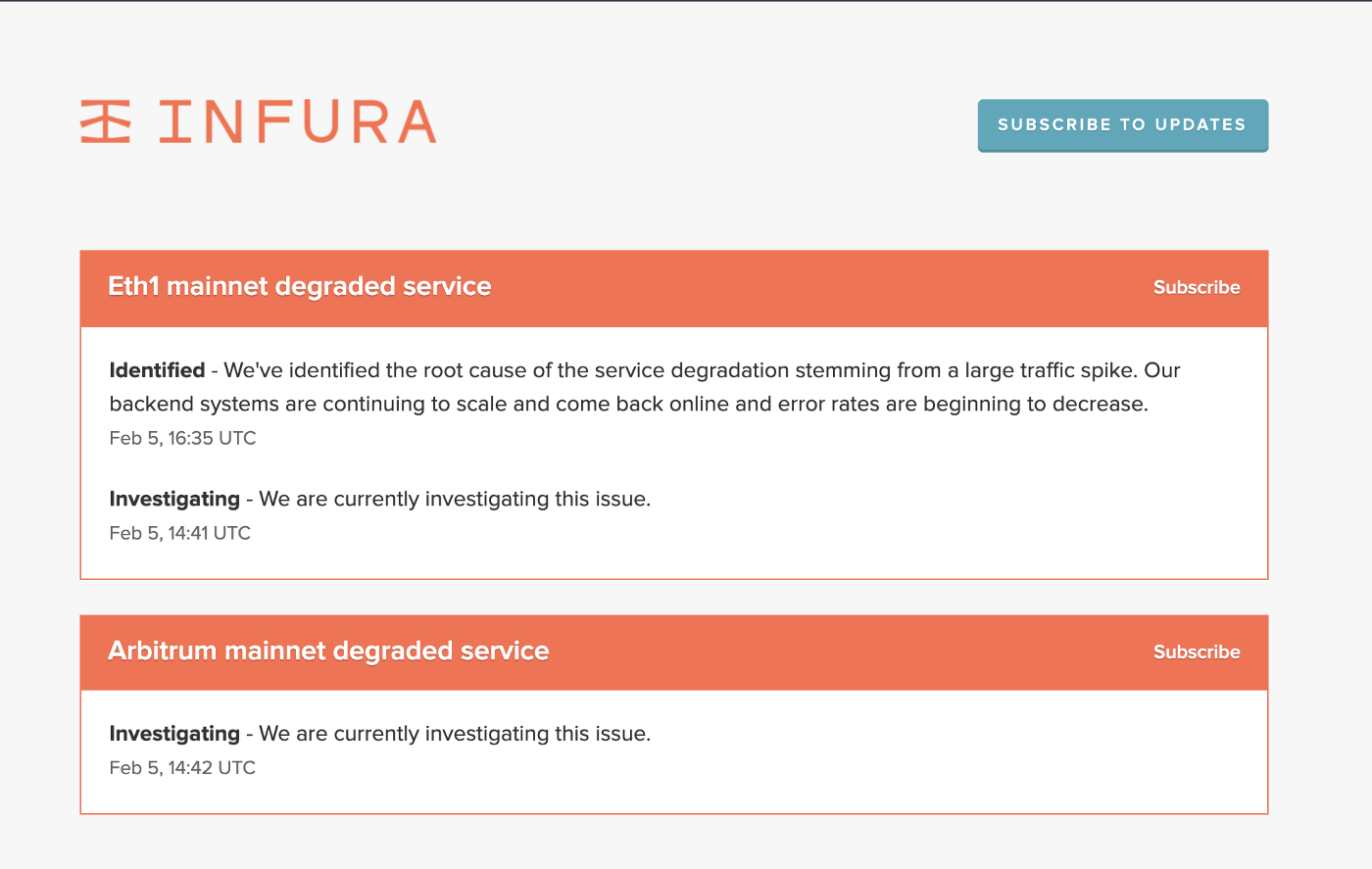 Le 5 février, Infura, la solution blockchain de MetaMask, a rencontré un problème qu’elle a ensuite révélé sur son Discord.